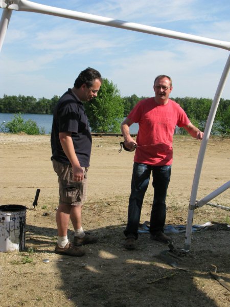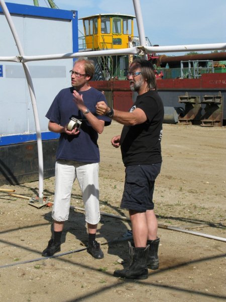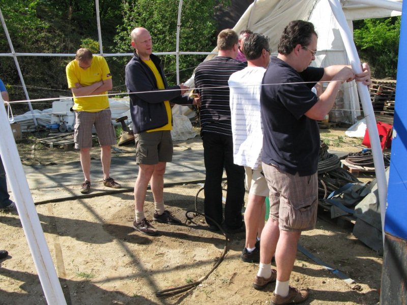 De dag begon met een uitleg en demonstratie van Lex op het droge. Daarna werden groepjes van twee gevormd - waarbij ook Paul Düthmann nog even behulpzaam was om weer een even aantal mensen te creëren - welke samen ook lijnen moesten gaan leggen, wederom op het droge. Een drietal buddyteams moesten op dezelfde stek met lijnen aan de slag, zodat tie-off punten dubbel gebruikt zouden zijn en zodat er ook kruisende lijnen zouden zijn.