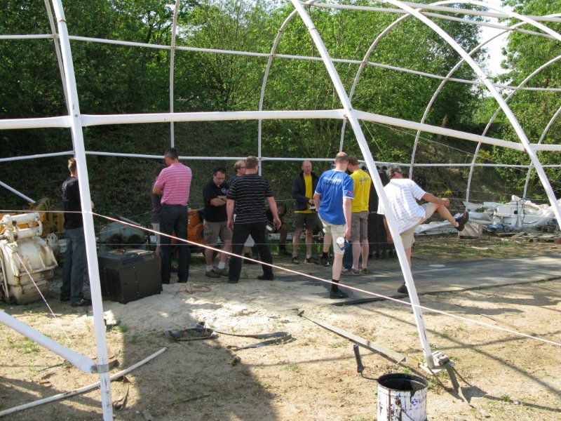 Na deze oefening op het droge volgde de eerste duik, waarbij drie teams van drie personen op het wrakje lijnen moesten gaan leggen. Elke paar tie-offs moest de reel worden overgegeven aan een ander teamlid, zodat iedereen alvast met de reel kon oefenen.
